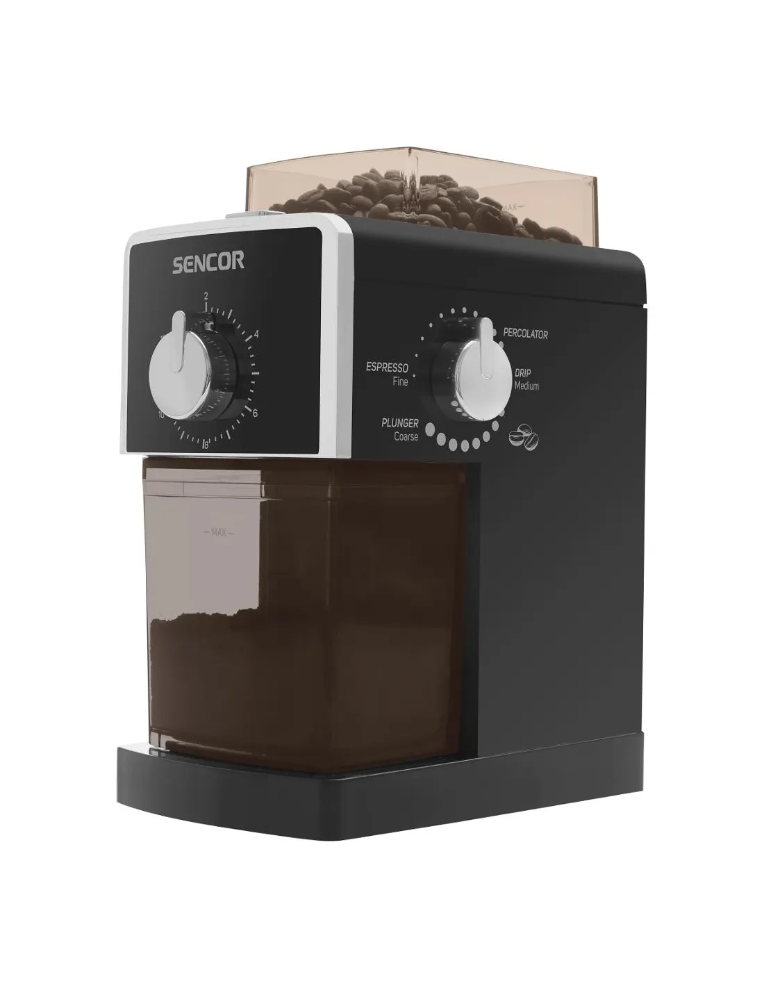Elektryczny młynek do kawy SENCOR SCG 5050BK jest idealny dla tych, którzy chcą cieszyć się świeżo zmieloną kawą z pełną kontrolą nad mieleniem, od espresso po French Press.