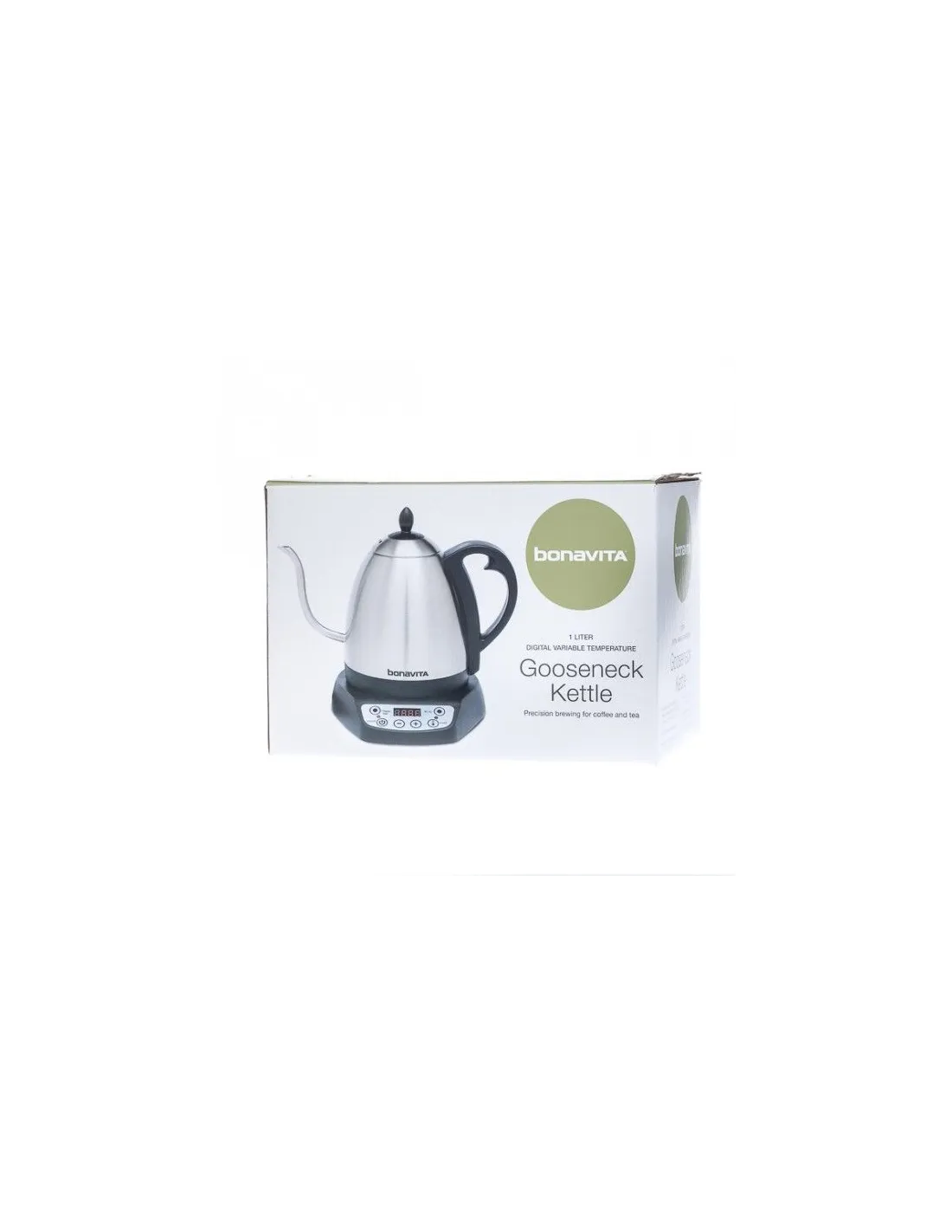 Sprytny czajnik do wody Bonavita z regulowaną temperaturą, stoperem i wąską wylewką do precyzyjnego nawadniania. Pojemność 1 l.