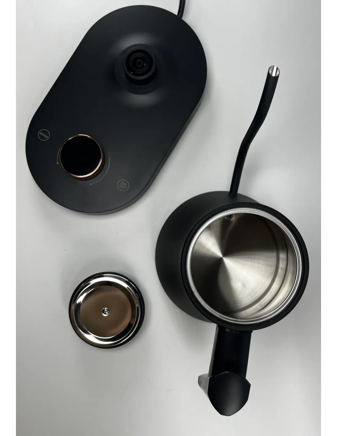 Inteligentny czajnik elektryczny Eletric Kettle Kaffia pozwala ustawić dokładną temperaturę, do której należy podgrzać wodę w celu prawidłowego przygotowania napoju. Oprócz ustawionej temperatury pokazuje również aktualną temperaturę wody, dzięki czemu działa jak termometr. Czajnik posiada obrotową podstawę 360° oraz stylowy panel dotykowy z pokrętłem, które pełni również funkcję wyświetlacza.