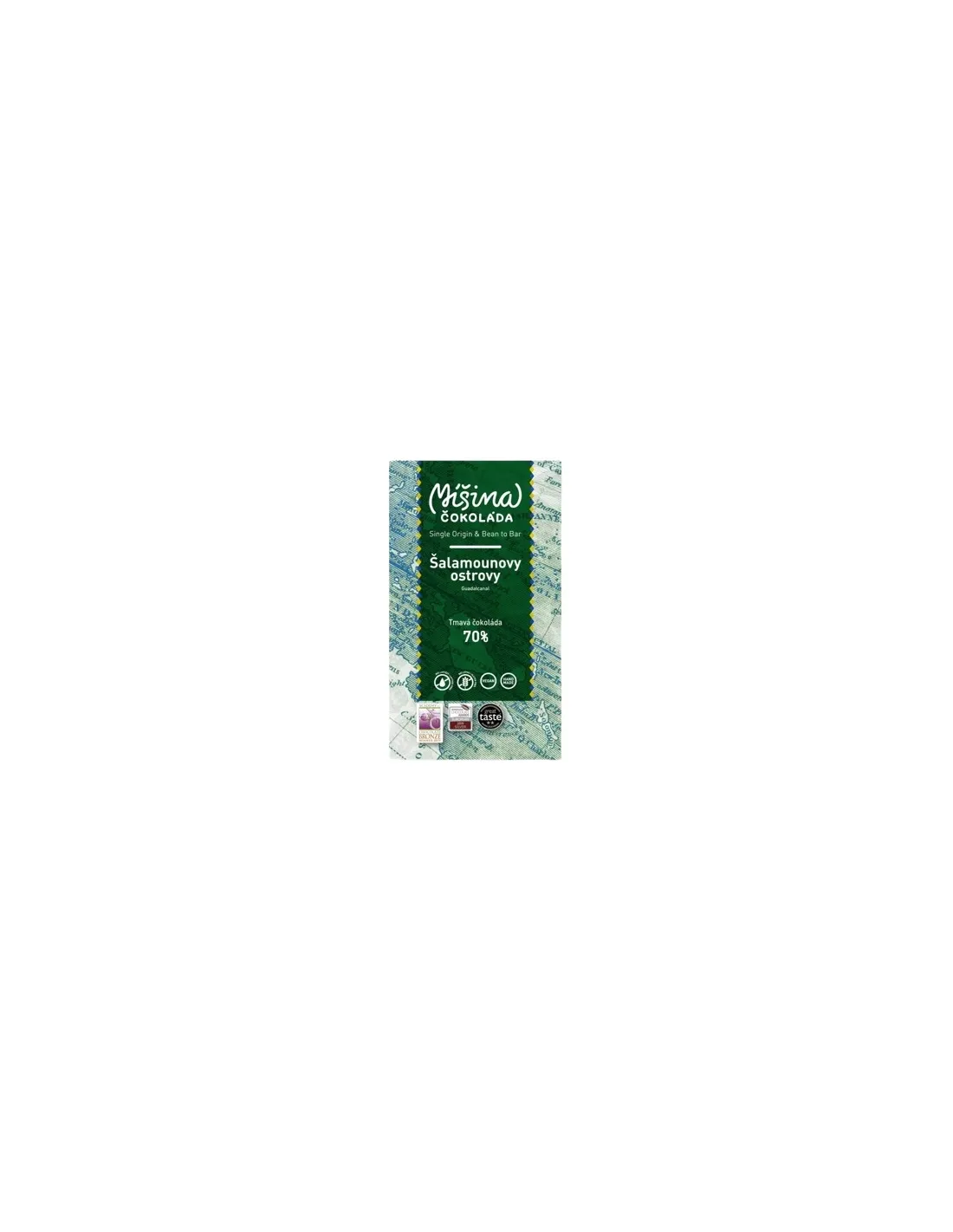 Ciemna czekolada wytwarzana z wyselekcjonowanych ziaren kakaowca z dalekich Wysp Salomona. Znajdziesz w niej nuty oliwek, miodu i tytoniu.