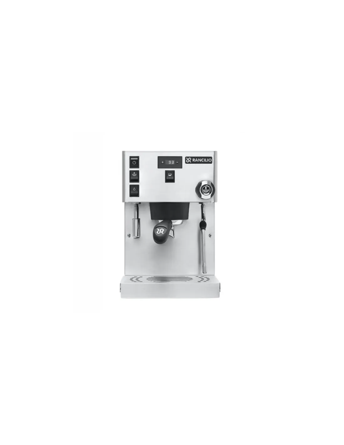 Półprofesjonalny ekspres do kawy Rancilio Silvia Pro z podwójnym bojlerem, regulacją temperatury PID i cyfrowym wyświetlaczem do kontroli temperatury i czasu ekstrakcji. Jest wyposażony w ręczne dozowanie.