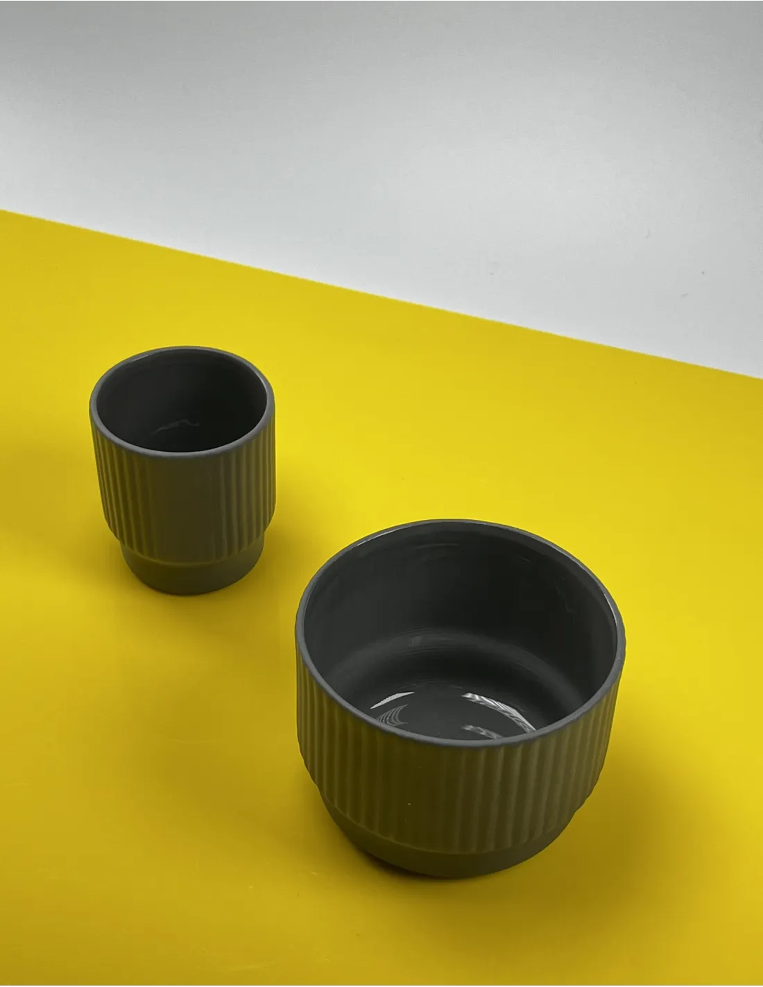 Ręcznie wykonana kamionkowa filiżanka do espresso łączy tradycyjne rzemiosło z nowoczesnym wzornictwem. Wytrzymałość kamionki sprawia, że idealnie nadaje się do picia mocnej kawy. Pojemność: 60 ml