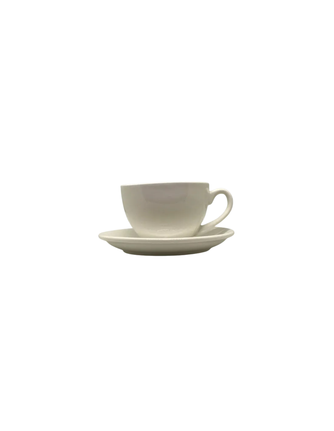 Porcelanowa filiżanka do cappuccino o pojemności 200 ml. Zawiera spodek. Kolor: biały.