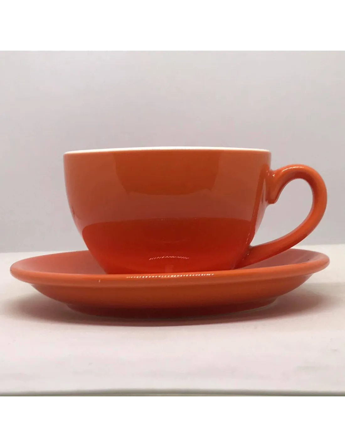 Porcelanowa filiżanka do cappuccino o pojemności 200 ml. Zawiera spodek. Kolor: pomarańczowy.