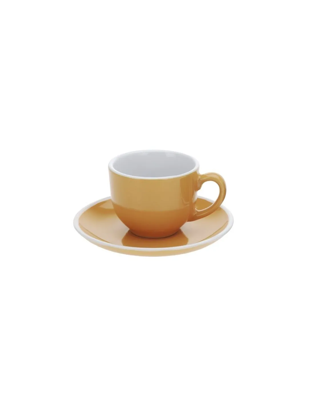 Ceramiczna filiżanka do espresso o pojemności 90 ml, odpowiednia do klasycznego lub podwójnego espresso. Zawiera spodek. Kolor: pomarańczowy.