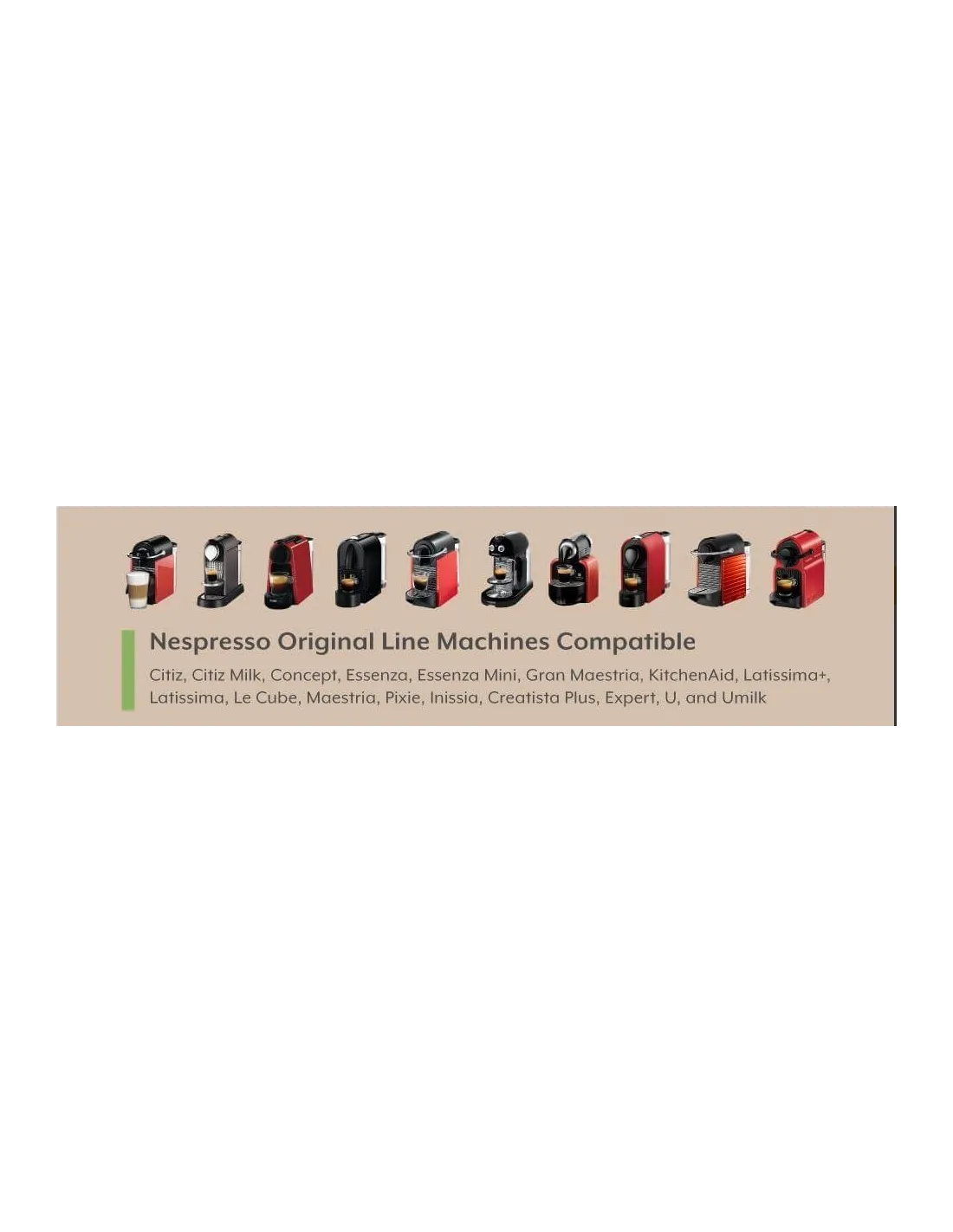 Działa z ekspresami Nespresso Citiz, Citiz-milk, Concept, Essenza, Essenza Krups, Essenza Mini, Gran Maestria, Inissia, Latissima +, Latissima, Le Cube, Maestria, Pixie, U i U-milk, Expert, Creatista Plus.