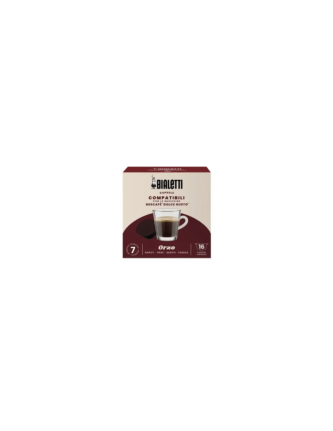 Kapsułki Bialetti Dolce Gusto® Orzo zawierają pyszną kawę jęczmienną, która oferuje smak prawdziwego włoskiego espresso. Ciesz się tą naturalną i zdrową kawą o każdej porze dnia.