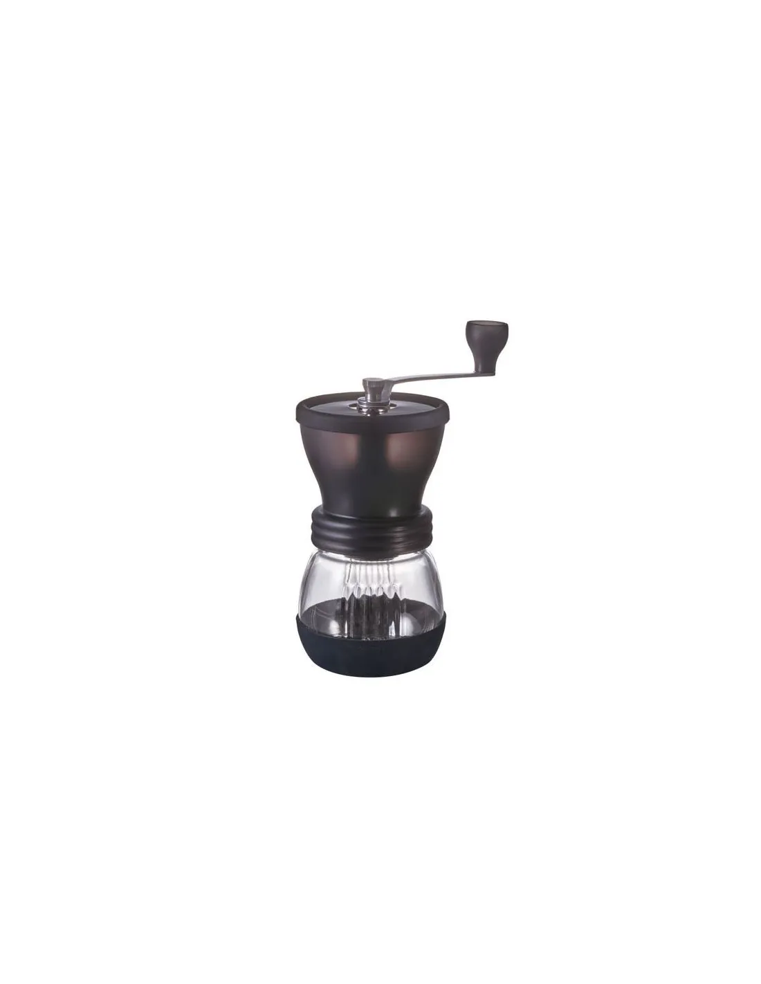 Dzięki ergonomicznemu kształtowi młynek bardzo łatwo trzyma się w dłoni, a mielenie jest bardzo wygodne. Spód młynka wyposażony jest w antypoślizgową podkładkę wykonaną z wytrzymałej gumy, która zapewni, że młynek nie będzie się obijał podczas mielenia, nawet na śliskich powierzchniach. Przezroczysty szklany pojem nik na zmieloną kawę jest wyposażony w pokrywkę, dzięki czemu można go używać do przechowywania kawy do późniejszego wykorzystania. Może pomieścić do 100 g kawy.