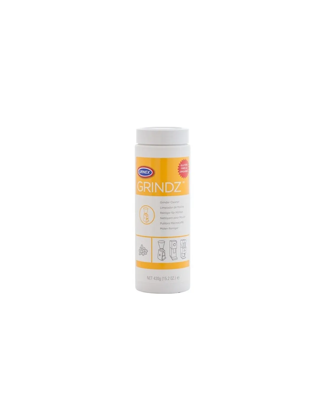 Opatentowany produkt Urnex Grindz do bezpiecznego i dokładnego czyszczenia młynków do kawy z olejków kawowych. Zawartość: 430 g mieszanki czyszczącej.