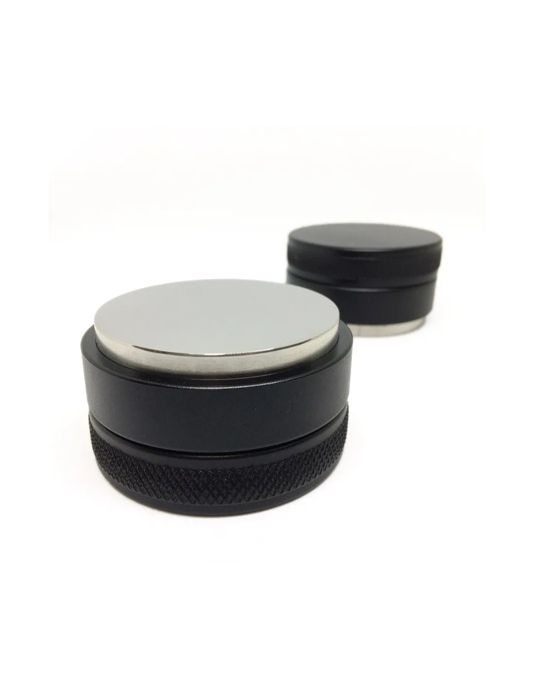 Profesjonalny tamper do kawy z podstawą ze stali nierdzewnejo regulowanej głębokości.