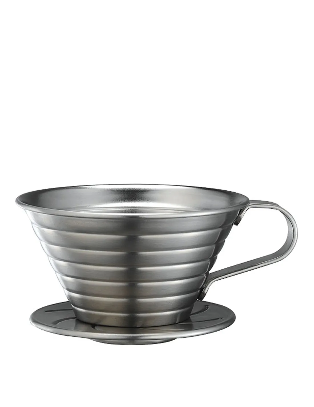 Filtru plat în stil Kalita Wave de la Tiamo, fabricat din oțel inoxidabil robust.