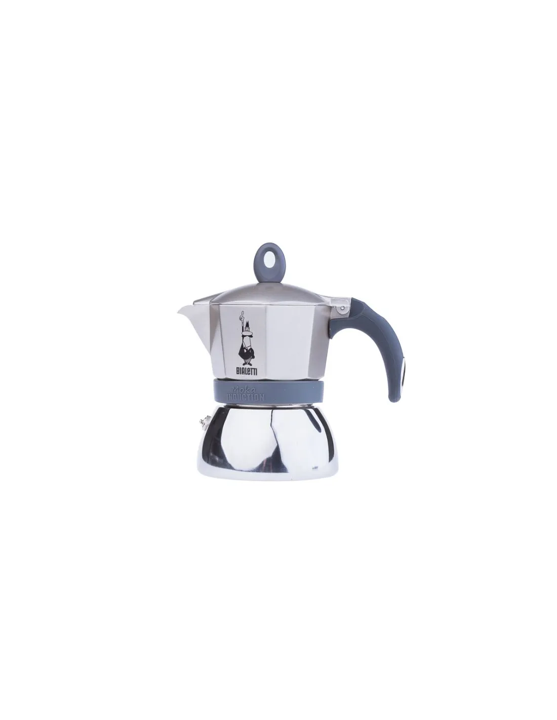 Legendara oală moka Bialetti cu opt pereți poate fi savurată acum și de posesorii de plite cu inducție, datorită bazei sale din oțel inoxidabil. Potrivit pentru 3 cești.