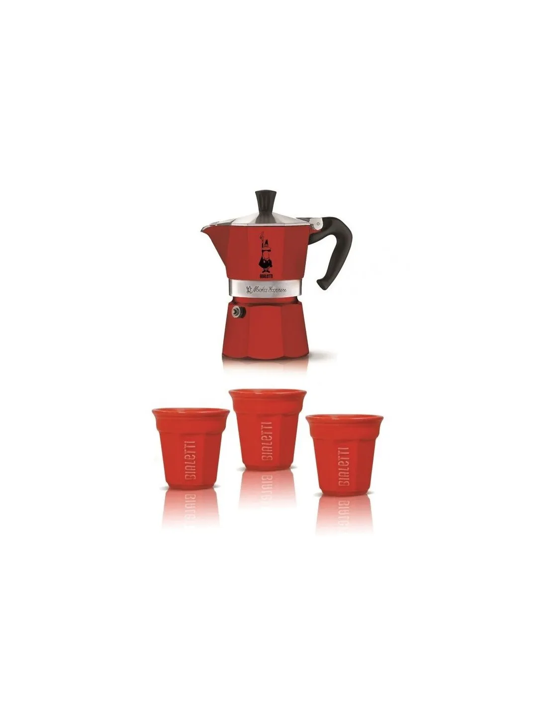 Set cadou Bialetti moka express 3 porții 3 căni, roșu