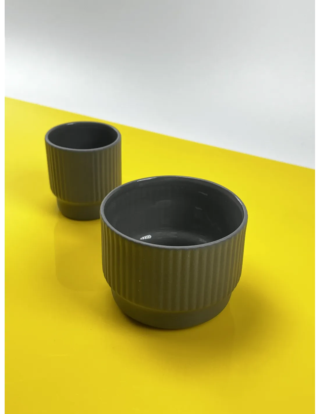 O cană cappuccino din gresie gri, cu un design modern și de bun gust, ideală pentru momentele de relaxare cu cafea. Capacitate: 120 ml