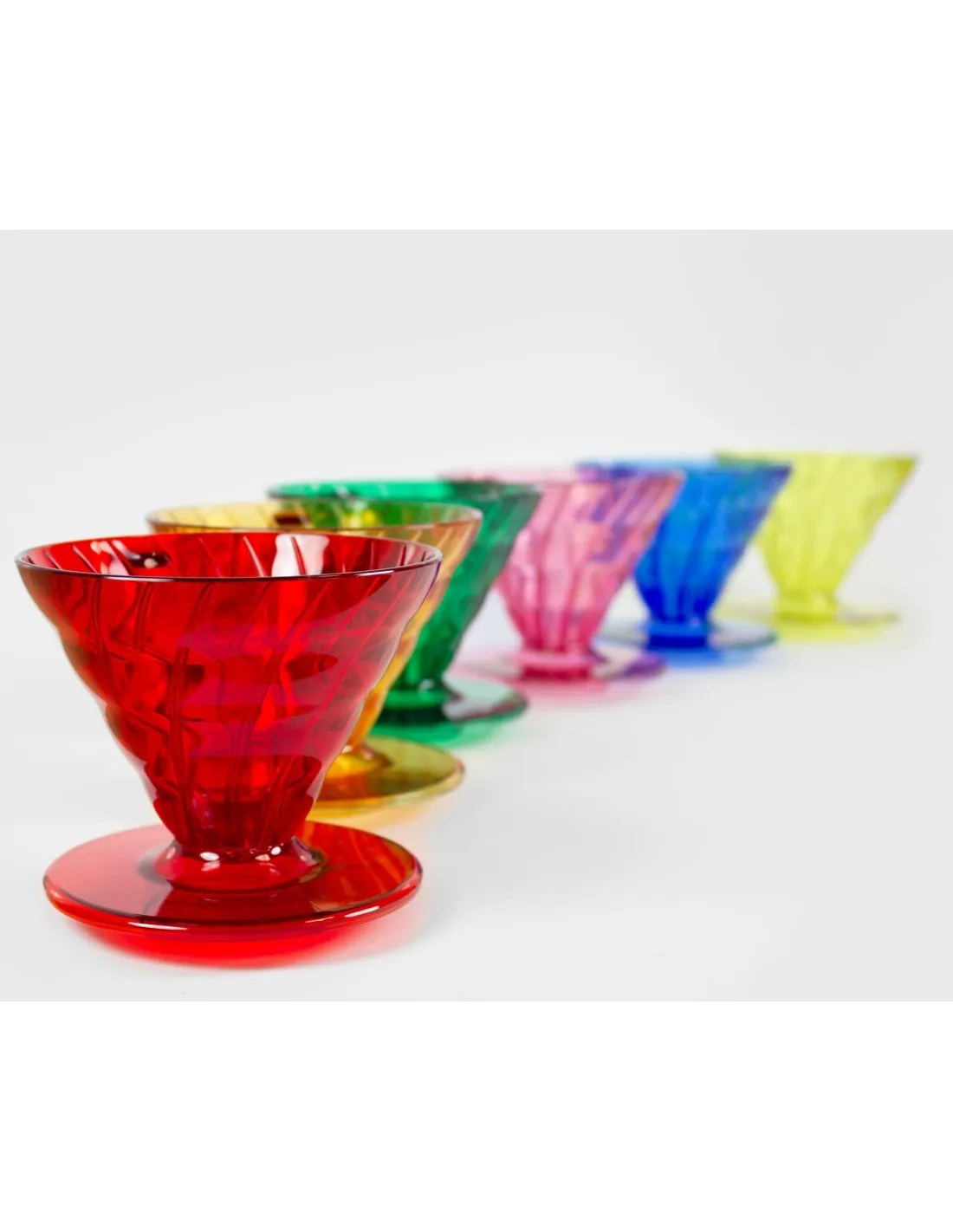 Picurătorul de plastic elegant și stilat Hario V60 de la marca japoneză Hario va deveni asistentul tău fidel, datorită căruia prepararea cafelei proaspete cu filtru va fi ușoară și cu rezultate garantate. Salubritatea plasticului este o chestiune de la sine înțeleasă, așa că nu trebuie să vă faceți griji cu privire la faptul că plasticul schimbă gustul cafelei. Dimpotrivă, plasticul face ca picurătorul să fie foarte ușor, ceea ce îl face popular pentru utilizarea în deplasare.
