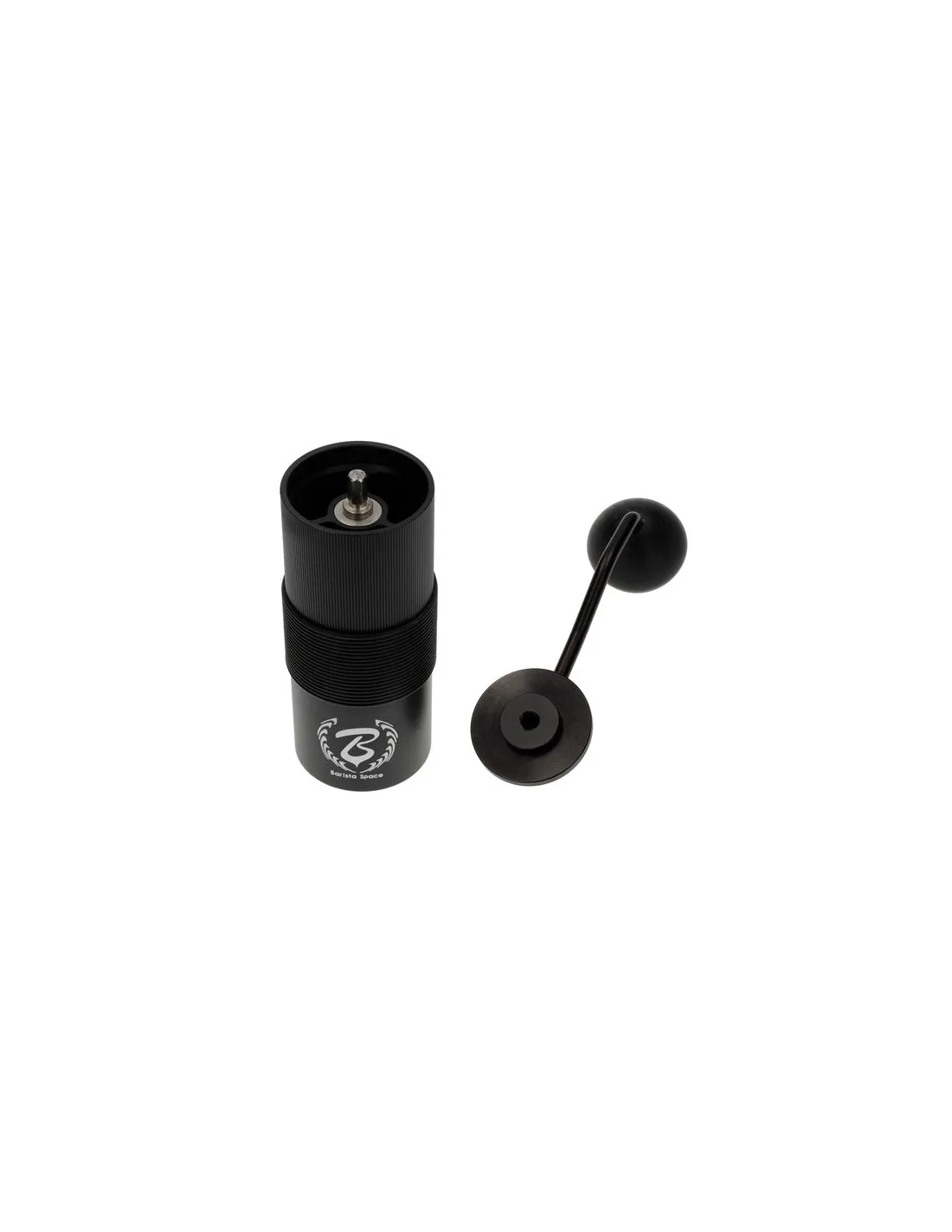 RâșnițaBarista space este fabricată din aluminiu, ceea ce o face ușoară și durabilă. O bandă de cauciuc în jurul corpului pol izorului asigură că acesta nu va aluneca în mână. Mânerul din aluminiu este curbat pentru a face șlefuirea mai ușoară și mai rapidă și este finisat cu un mâner frumos din lemn. Recipientul de jos este înșurubat în partea de sus, astfel încât să rămână bine fixat în timp ce se macină.