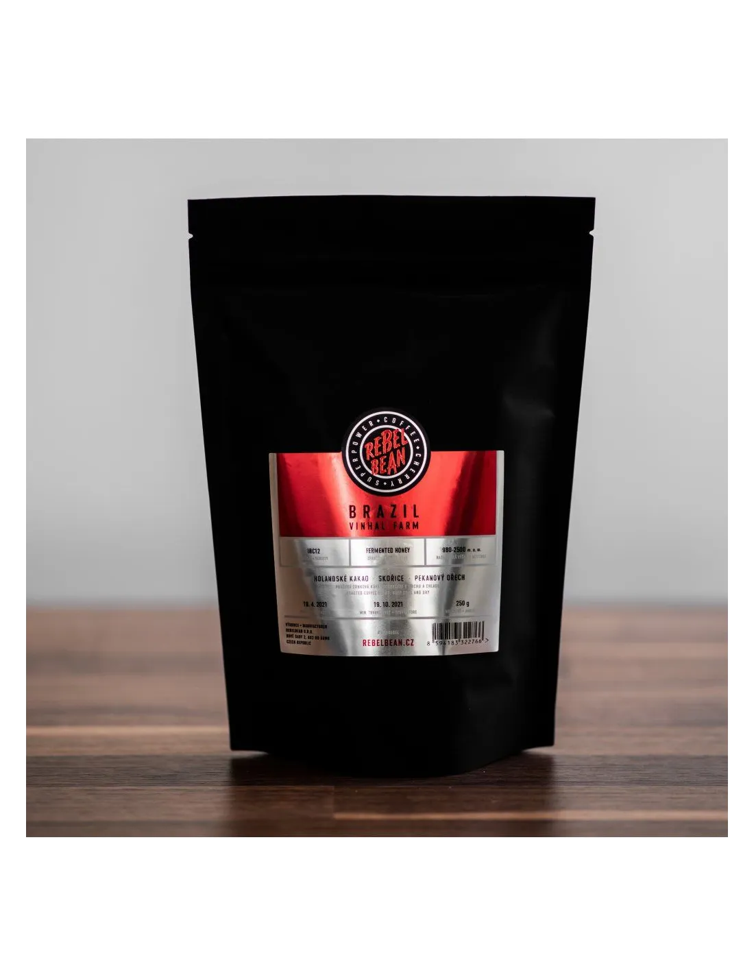 Cafea Vinhal din Brazilia selecționată și proaspăt prăjită de la prăjitoria Rebelbean din Brno. Cacao olandeză - Scorțișoară - Pecan