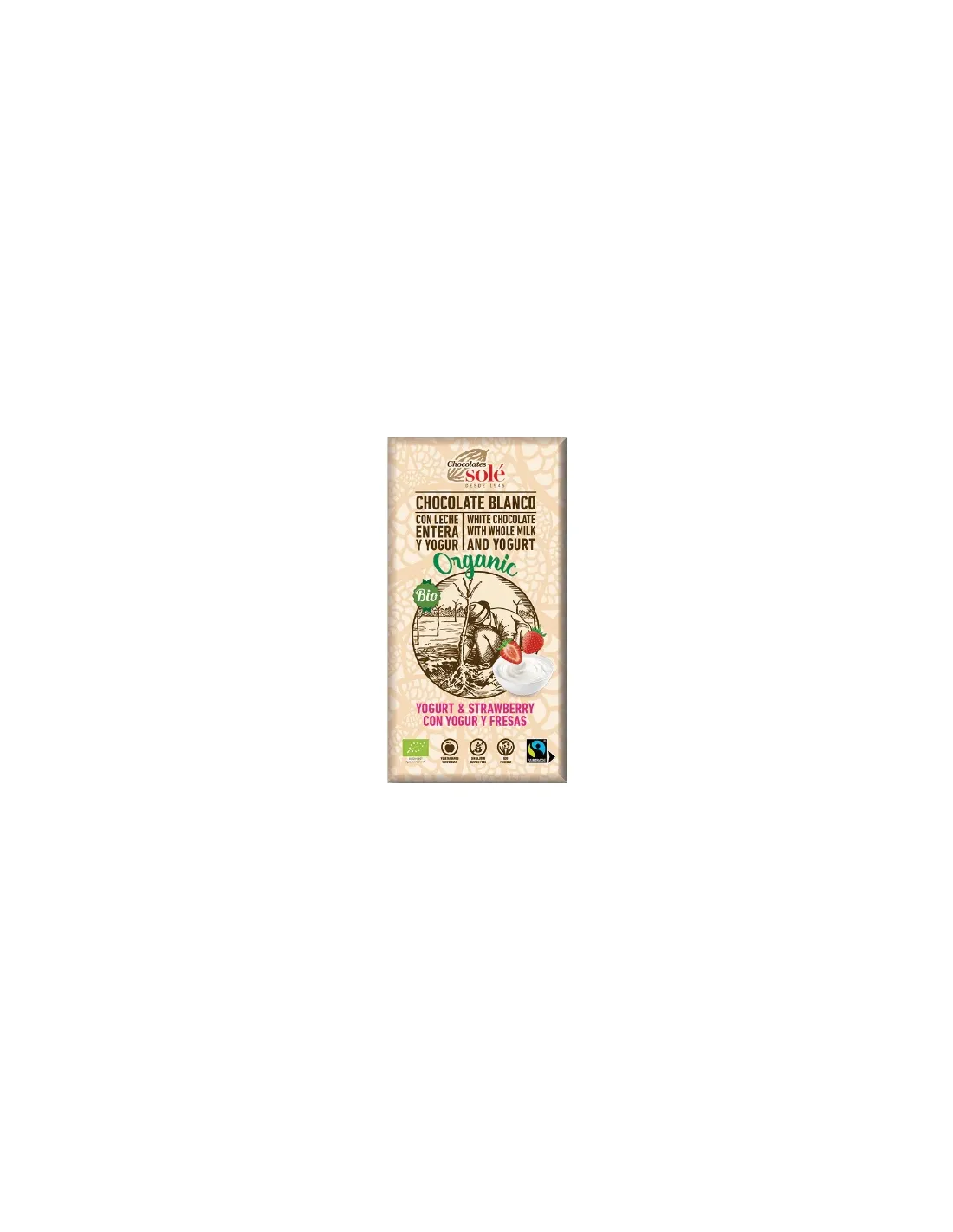 Čokolade Solé - Bela organska čokolada z jogurtom in jagodami