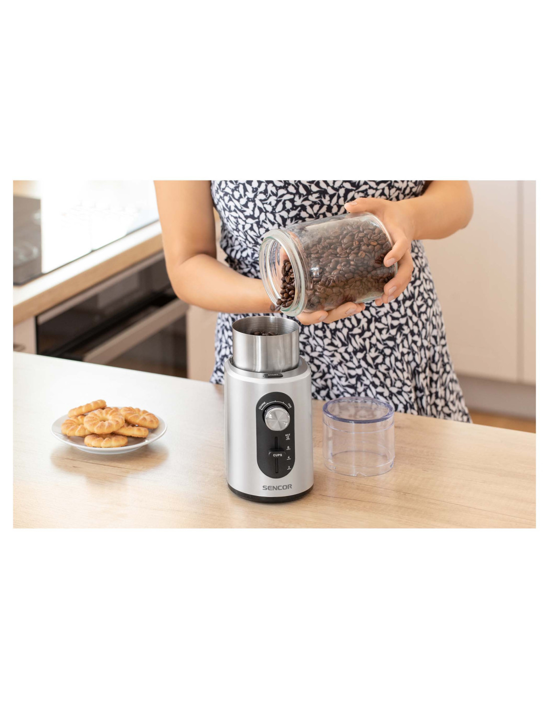 Ta električni mlinček za kavo je odlična izbira za vse ljubitelje sveže kave. S posebnim rezilom iz titana zagotavlja enakomerno in natančno mletje ne le kave, temveč tudi oreščkov, zelišč ali začimb. Z avtomatsko funkcijo enostavno nastavite želeno grobost mletja in število skodelic, tako da vedno pripravite točno tisto količino, ki jo potrebujete.