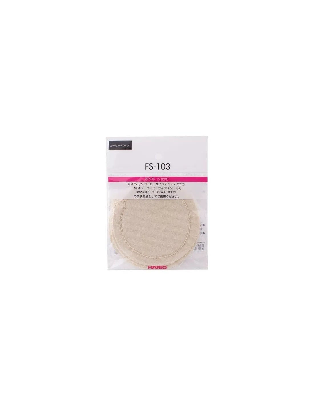 Paket vsebuje 5 bombažnih filtrov, ki ustrezajo vsem vrstam vakuumskega lončka Hario TCA-2. TCA-3 in TCA-5. Ko filtra ne uporabljate, priporočamo, da ga potopite v čisto vodo in shranite v hladilniku. S takšno skrbnostjo vam bo služil še naslednjih 100 uporab.