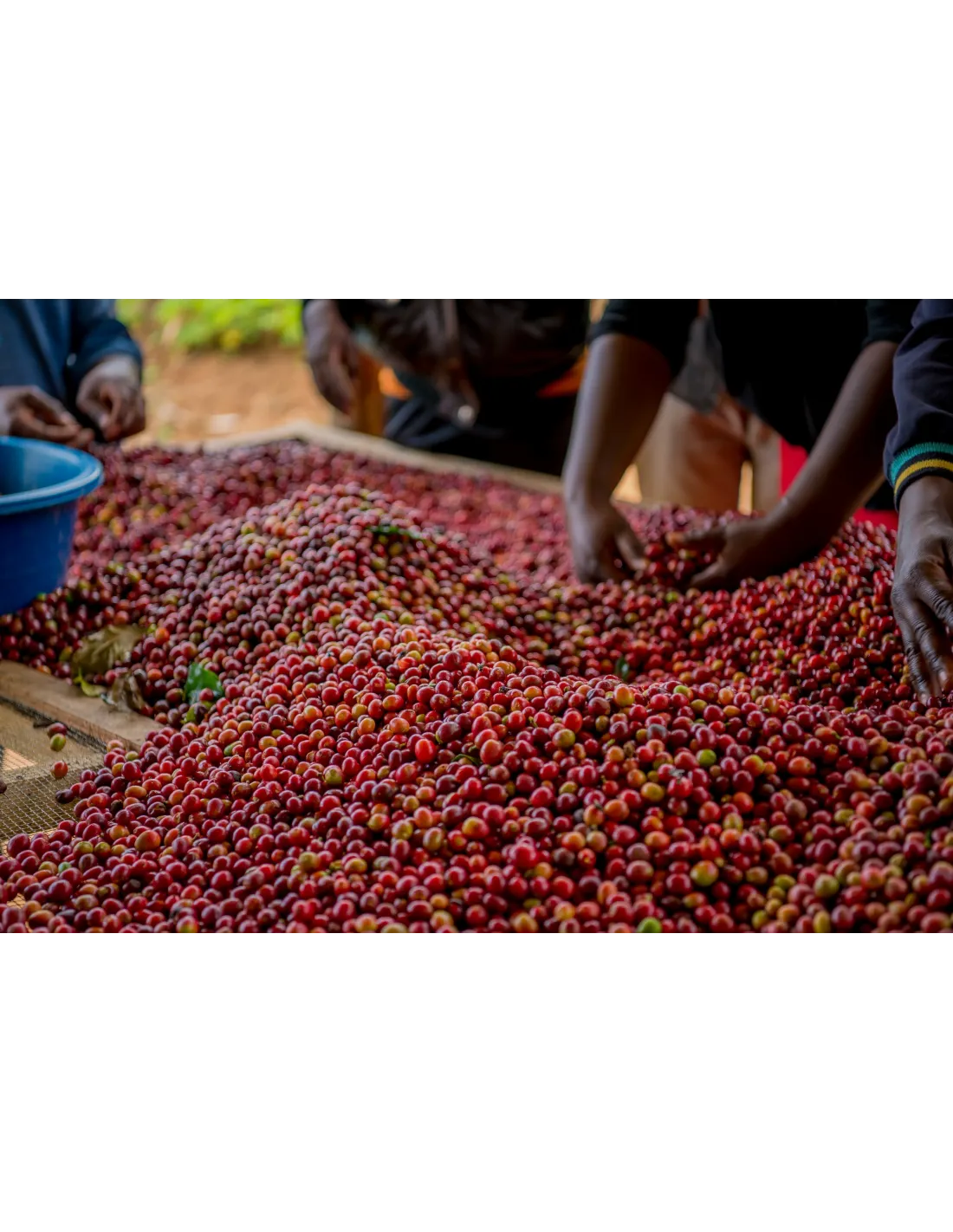 BV sezoni obiranja se kava selektivno ročno obira. Češnje so splavljene v majhnih vedrih, da se preveri njihova kakovost. Kakovostne češnje se nato ročno sortirajo in odstranijo poškodovane, nezrele in prezrele češnje. Češnje se nato sušijo 3 do 4 tedne na sušilnih mizah v enem sloju. Med sušenjem obiralci pregledujejo češnje in iščejo poškodovane kose. Po sušenju se pergament zapakira v vrečke in odpelje v skladišče. Strokovnjaki v laboratoriju družbe Greenco ocenijo vsako serijo in zagotovijo sledljivost v celotnem postopku.