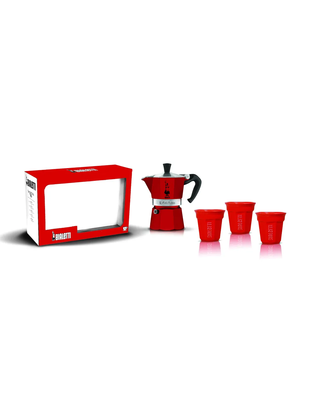Darilni set Bialetti moka express 3 porcije + 3 skodelice, rdeča