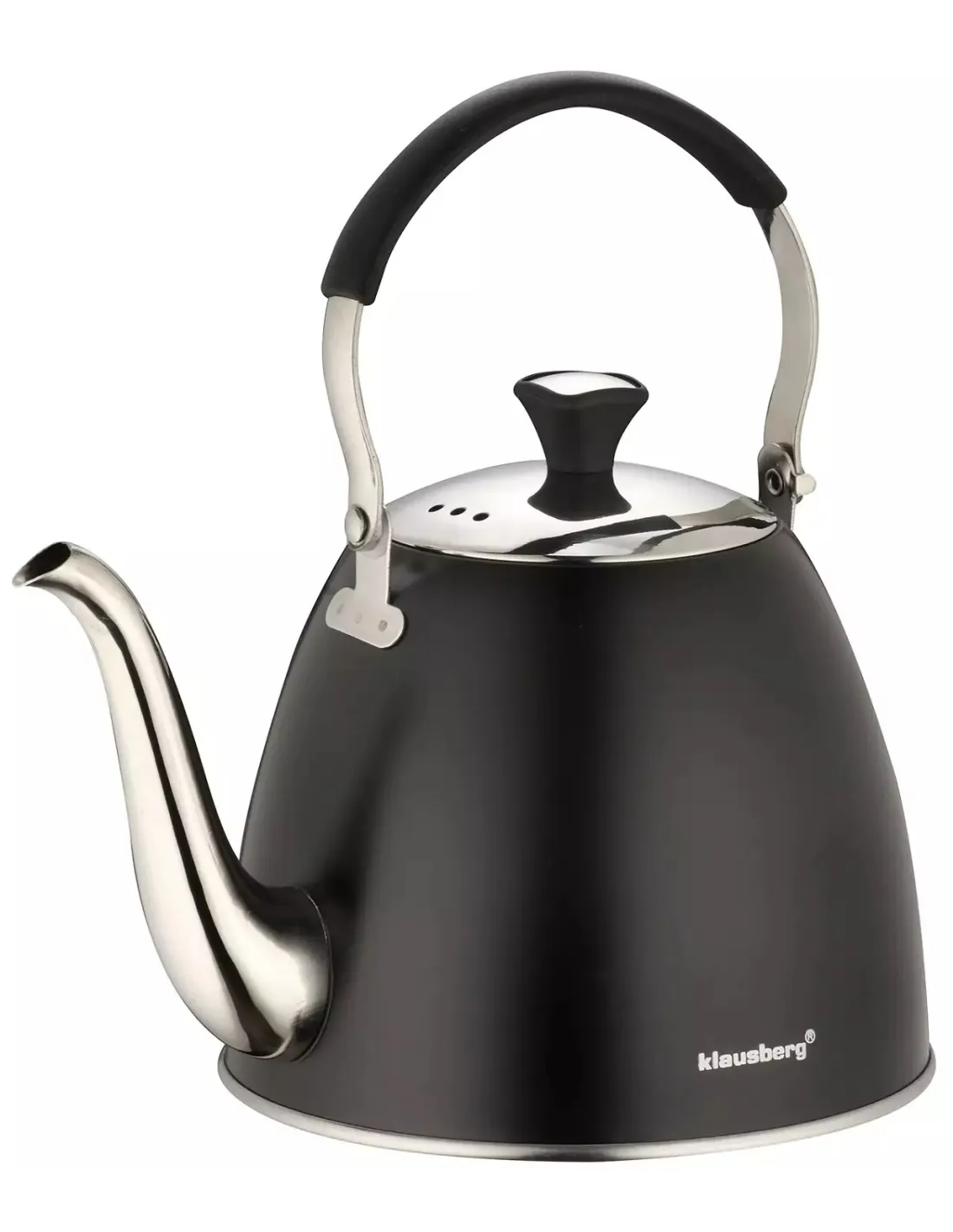 Čajnik iz nerjavečega jeklaKlausberg z vratom z elegantno obliko in odstranljivim cedilom, idealen za pripravo čaja in zeliščnih napitkov.