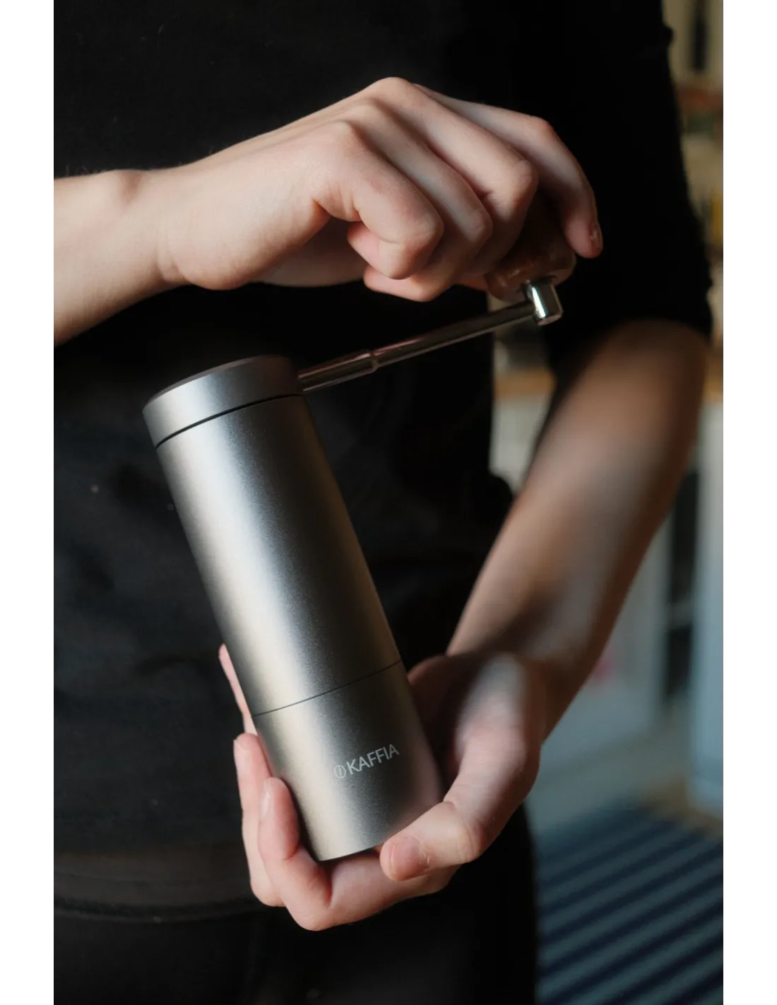 Natančno izdelan aluminijasti mlinček Kaffia Barista X z jeklenimi brusnimi kamni in ležaji, ki konkurira blagovnim znamkam, kot je Timemore, vendar je za polovico cenejši .