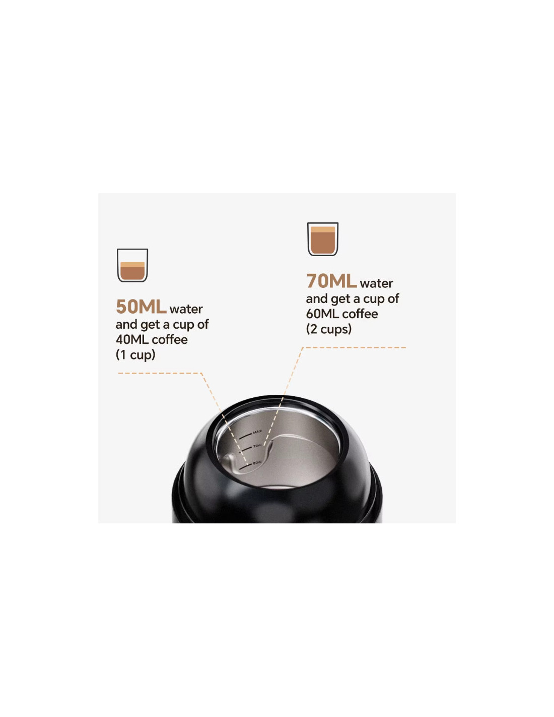 - 1 odmerek (50 ml vode) → 40 ml kave