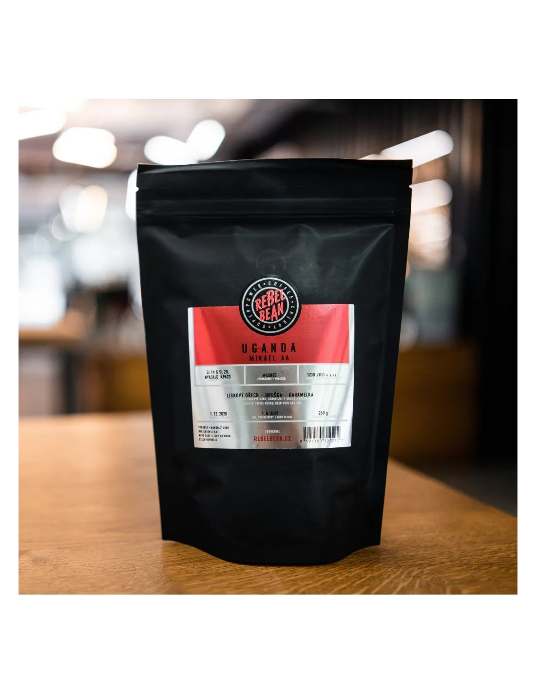 Izbrana in sveže pražena kava Uganda Mikael AA iz pražarne Rebelbean v Brnu.