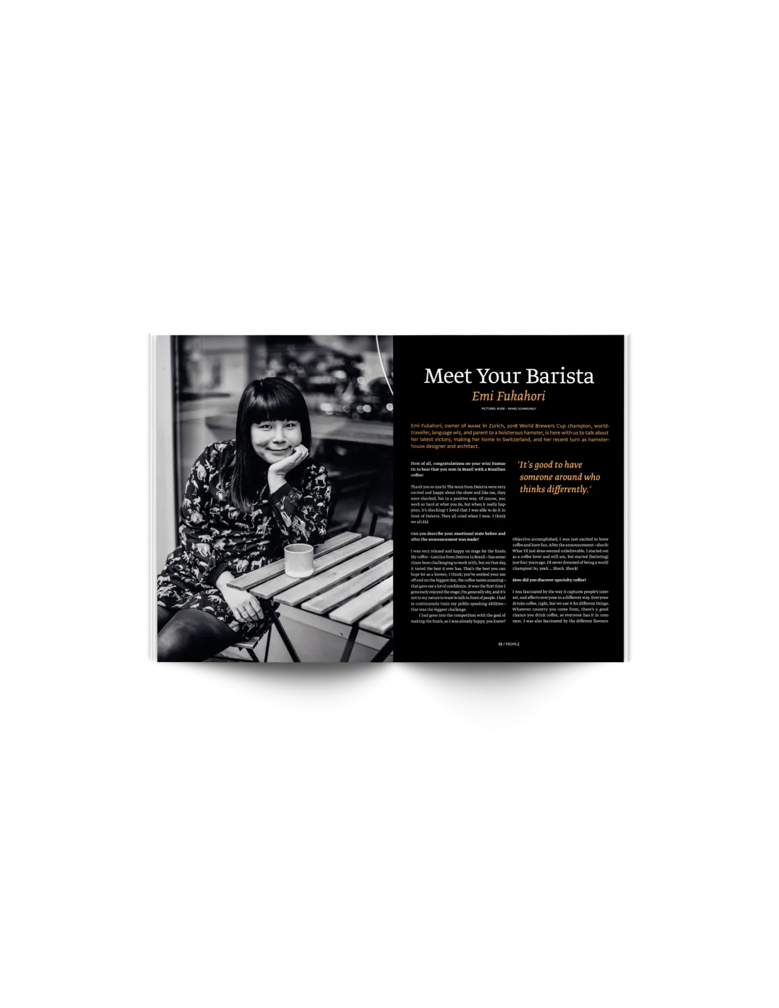 Poglavje LJUDJE je ustvarjalni prostor, vsebuje i intervju s svetovnim prvakom v varjenju pivaers Cup 2018Emi Fukahori. Jenn Chen prinaša esej o povezavah med zaposlovanjem in kavokava zasvojenostíin kratka zgodba iz Brazilije - o grozljivem dnevu v življenju poklicnega degustatorja degustator kaveki postopoma izgublja okus.