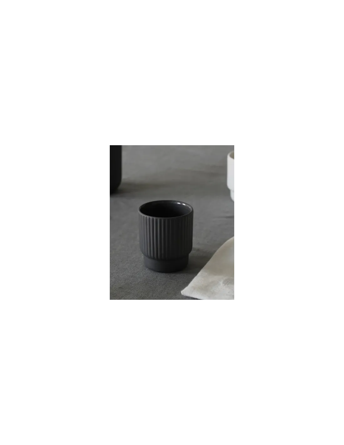 Ta skodelica za espresso z elegantnim dizajnom je izdelana iz kamenine. Izdelana je ročno v delavnici v Vietnamu in žgana pri visoki temperaturi 1 200-1 250 °C, kar ji zagotavlja trdnost in vzdržljivost. Primerno za pomivanje v pomivalnem stroju.