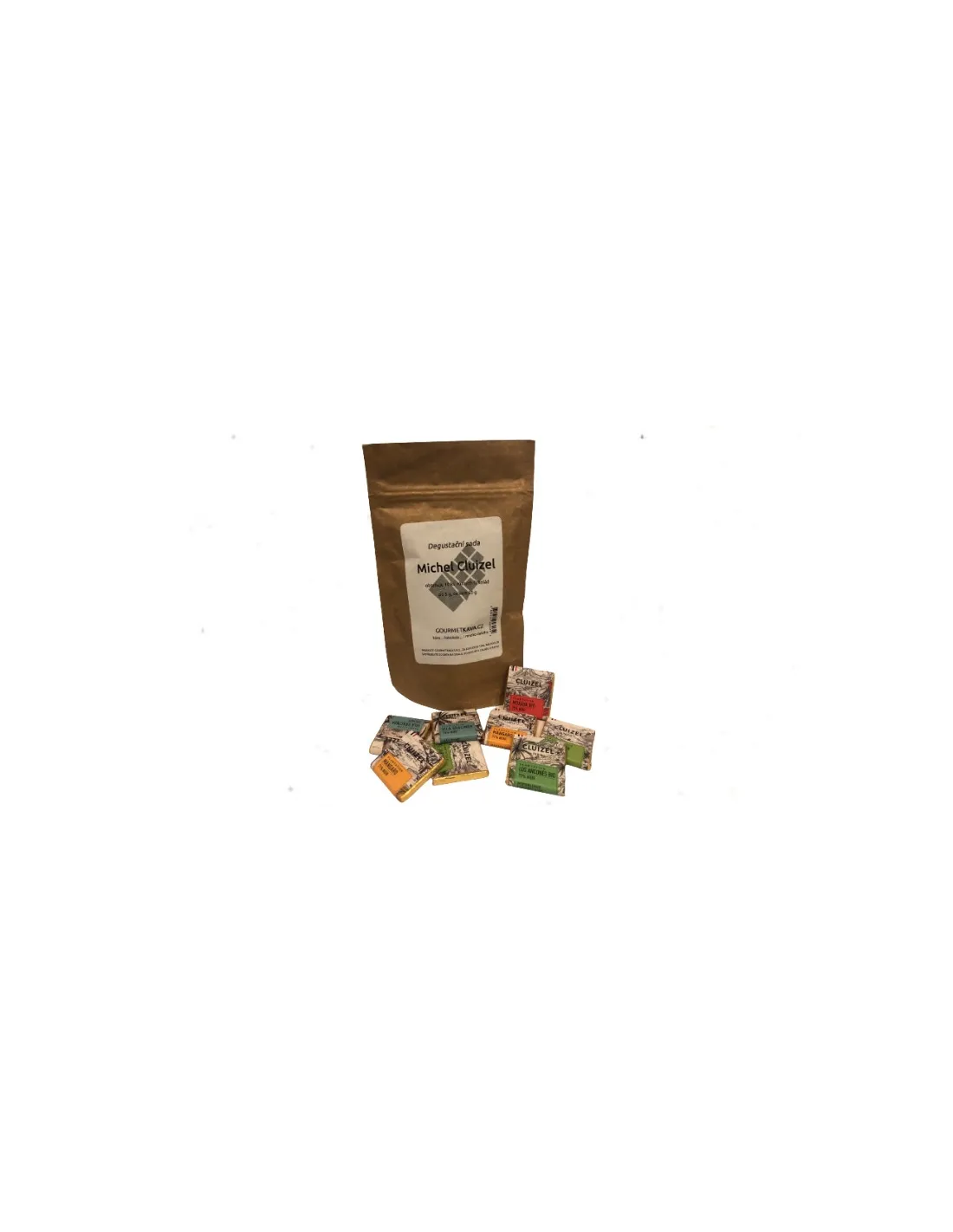 Degustacijski komplet za spoznavanje plantažnih čokolad Michel Cluizel Premier Cru. Vsebuje: 10 posamično zavitih kvadratkov 6 sort.