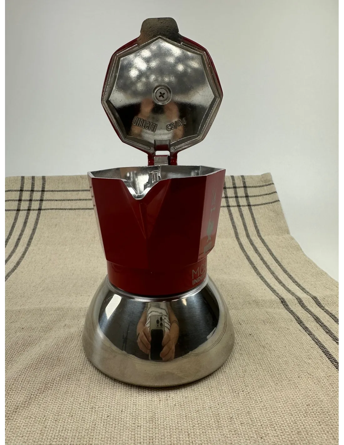 Legendárny osemstenný moka hrniec Bialetti si teraz môžu vychutnať aj majitelia indukčných varných dosiek vďaka jeho podstavcu z nehrdzavejúcej ocele. Vhodný na 2 šálky (cca 100 ml). Použité / zľava.