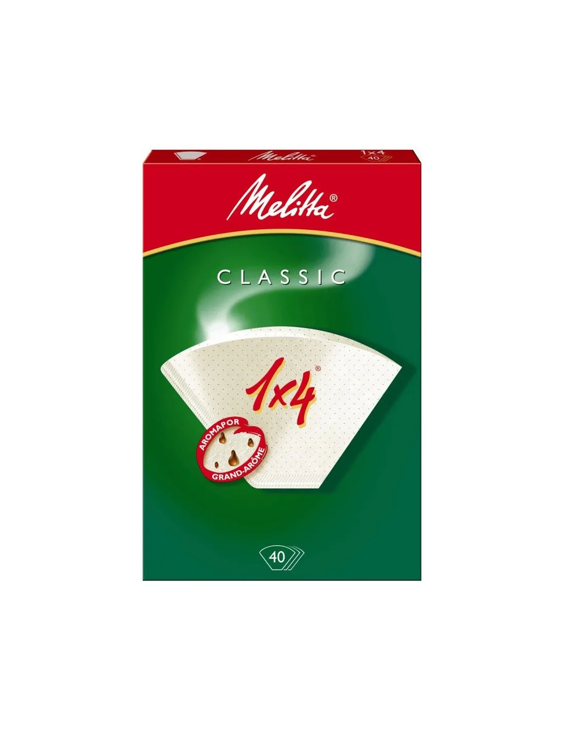 Papierové filtre Melitta® Original vo veľkosti 1x4, ktoré rozvíjajú optimálnu chuť filtrovanej kávy. Obsah balenia: 40ks