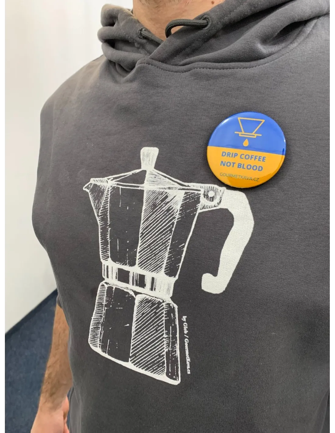 Kúpou plagátu DRIP COFFEE NOT BLOOD prispejete na jednu z najväčších humanitárnych zbierok pre Ukrajinu, ktorú organizuje spoločnosť Člověk v tísni.