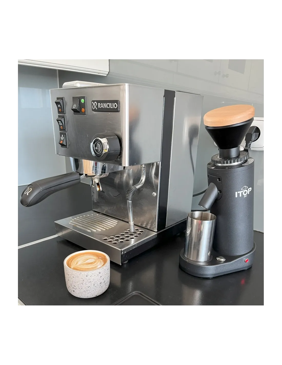 Malý, dizajnový elektrický mlynček na kávu Kaffia Itop Zero je vhodný aj na prípravu espressa vďaka technológii nulového zadržiavania - káva sa v ňom nezadržiava.
