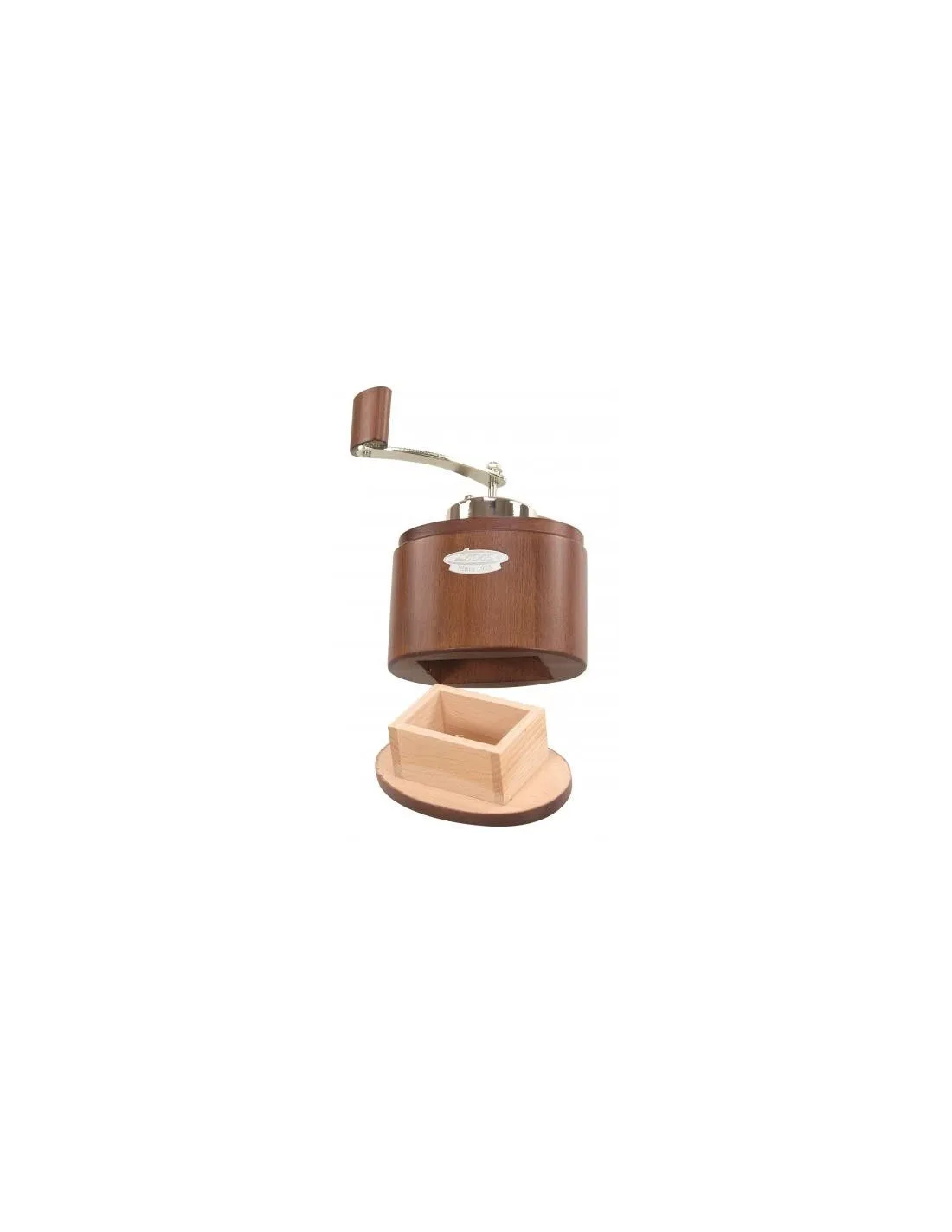 Je vyrobený z jemného dubového dreva, kovové časti sú poniklované a mlecie kamene sú z tvrdenej ocele. Na celý mlecí systém sa vzťahuje záruka 10 rokov.