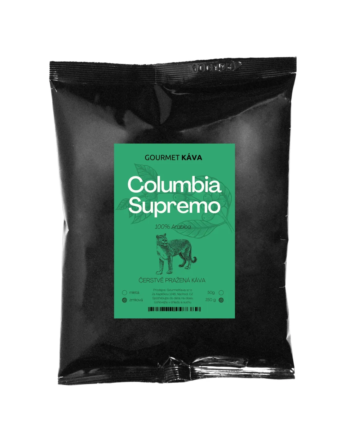 Chuť: Colombia Supremo má sladkú, zamatovú chuť s výraznou arómou pripomínajúcou pomaranče alebo bergamot. Telo je krásne plné a silné s jemnou rozpoznateľnou kyslosťou v kombinácii s čokoládovými a ovocnými podtónmi. Ide o veľmi vyváženú kávu, v ktorej sa chuť, aróma, kyslosť a ďalšie vlastnosti navzájom nádherne dopĺňajú a tvoria dokonalý celok.