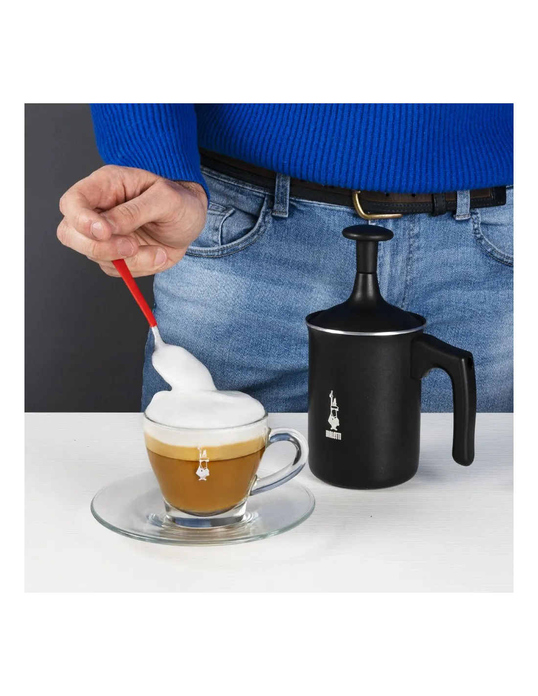 Napeňovač mlieka Bialetti Tuttocrema si zamilujú všetci milovníci mlieka do kávy alebo iných nápojov. Mlieko však už nemusíte nalievať studené z fľaše. Vďaka štýlovej šľahacej metličke môžete za pár minút vyčarovať nádherne hustú a hladkú mliečnu penu, ktorá bude v okamihu pripravená na nalievanie do kávy.
